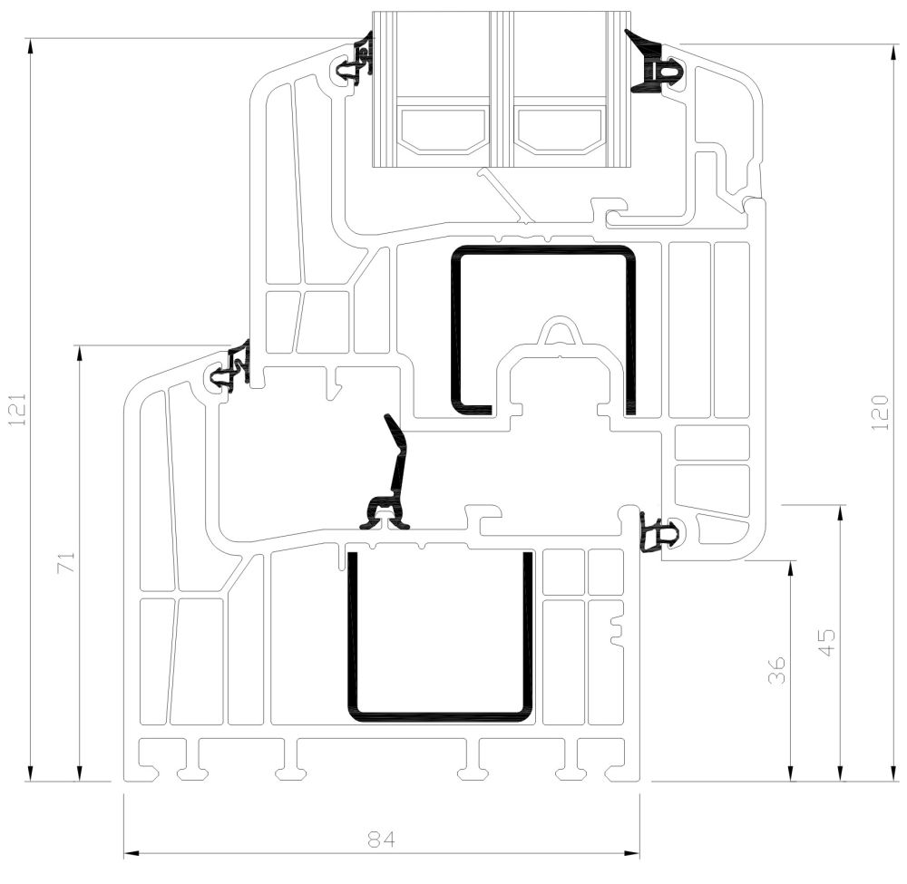 - Systém so vstavanou hĺbkou 84 mm so 6 komorami