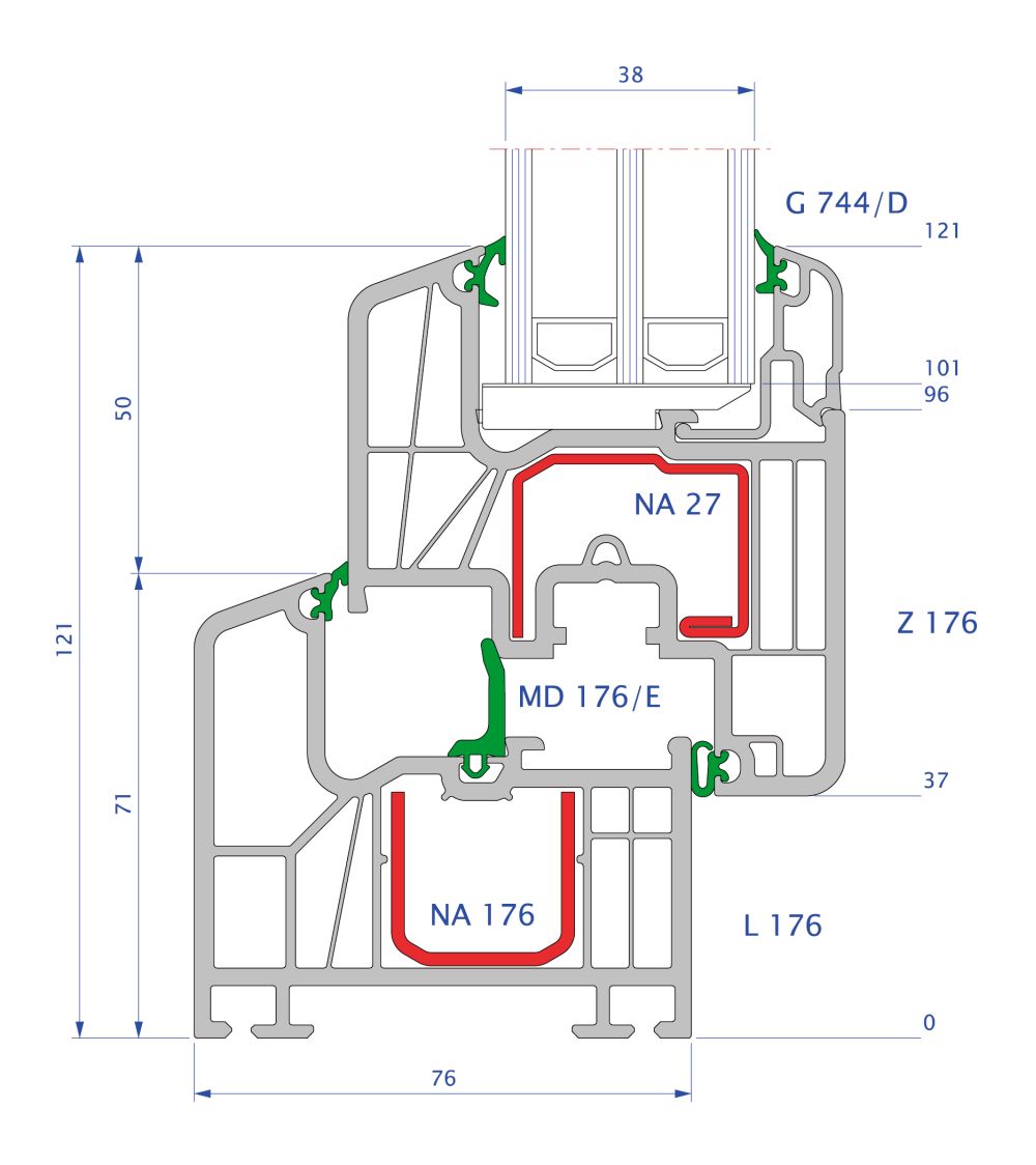 - Možnosť zasklenia silnými tepelnoizolačnými alebo zvukotesnými sklami v hrúbke až 44 mm